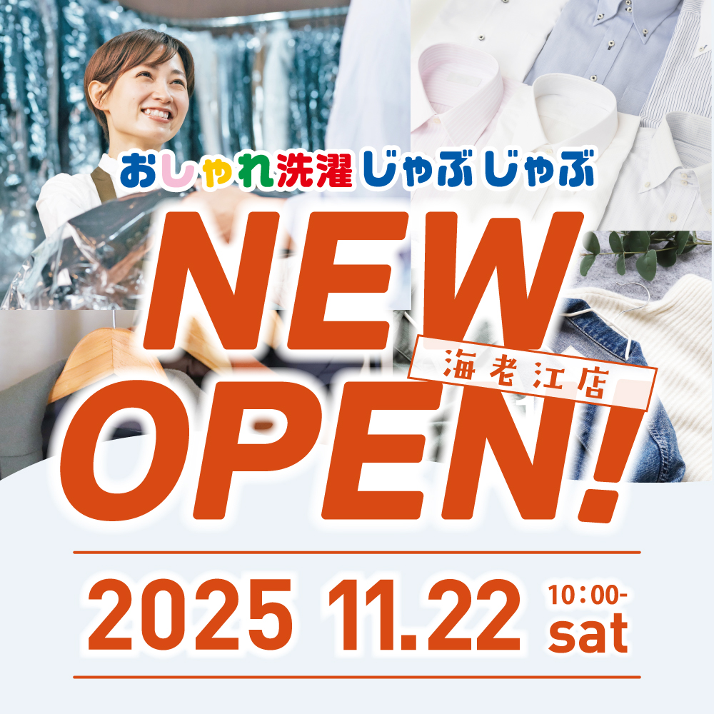 2025年11月22日(土) 大阪府大阪市福島区海老江1丁目11-2-104 に「おしゃれ洗濯じゃぶじゃぶ 海老江店」がオープンいたしました! オープンを記念して、40%OFFセールを開催いたします!ぜひこの機会にご利用ください!